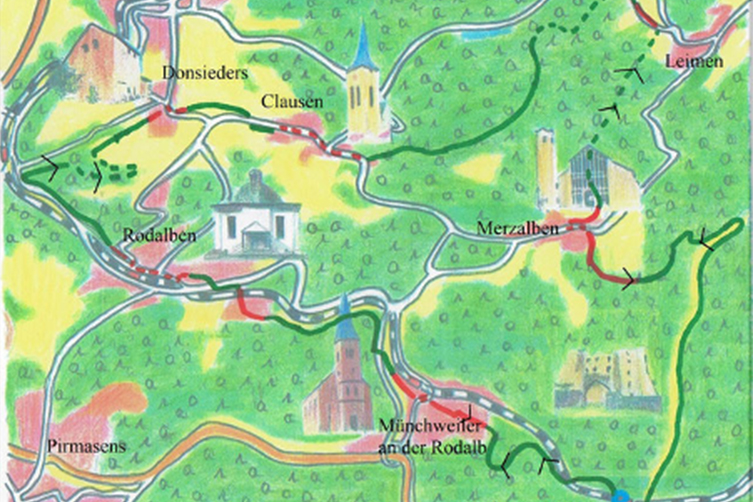 Die 61,3 km lange „Pfälzerwald-Tour“ führt hauptsächlich über Radwege vom Hauptbahnhof in Kaiserslautern nach Hinterweidenthal.